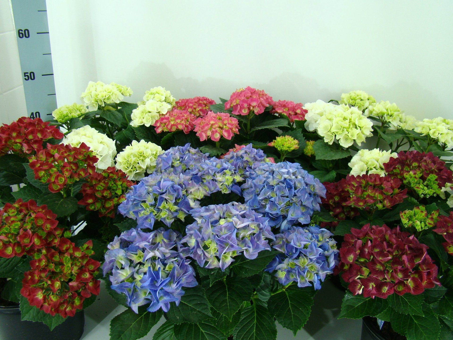 Boerderijwinkel met verse asperges, aardbeien en hortensia's